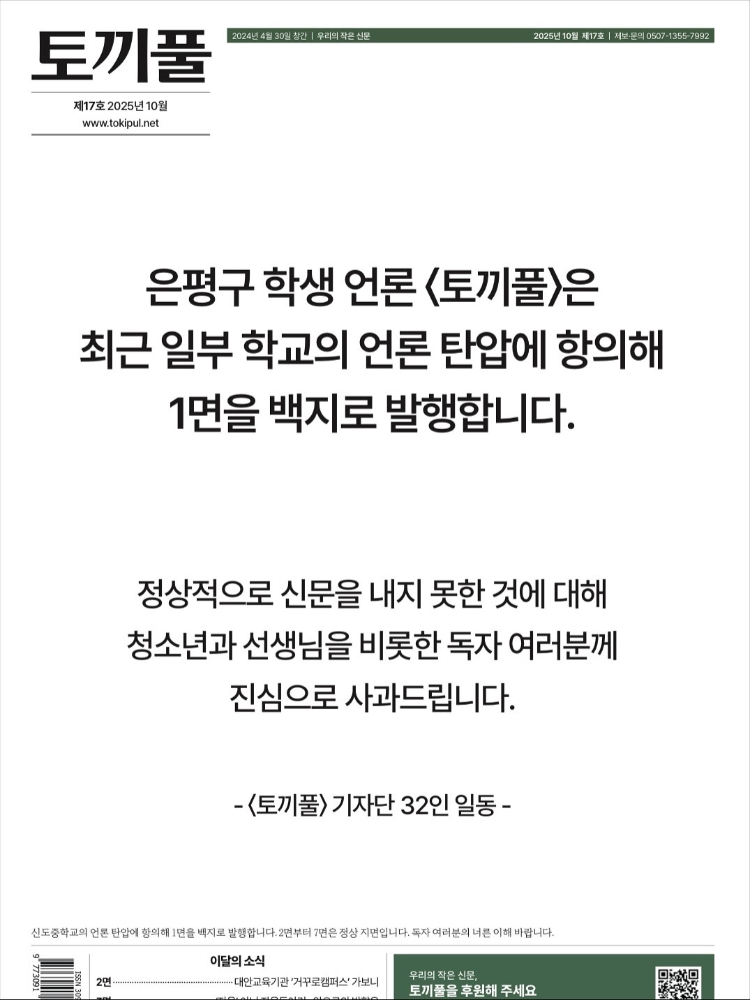 이번 신도중학교의 일은 결코 돌발적이거나 이례적인 사건이 아닙니다. <토끼풀>이 교내 배포를 시작한 이래, 다수의 학교에서 '학부모 민원 우려', '학교에 등록하지 않았다' 등 불명확한 이유를 들어 배포를 통제하거나 사전 검열을 시도하는 일이 공공연하게 벌어져 왔습니다.